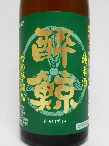 「 酔鯨 鏡の名水仕込み 純米酒 吟の夢60% 」