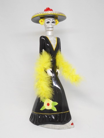鮮やかなドレスをまとったドクロの人形にメキシカン・ハット「ソンブレロ」をかぶった手作りの陶器ボトル。中身はアメリカンオーク樽で6ヶ月熟成されたアガベ100%のスムースでドライなプレミアムテキーラです。