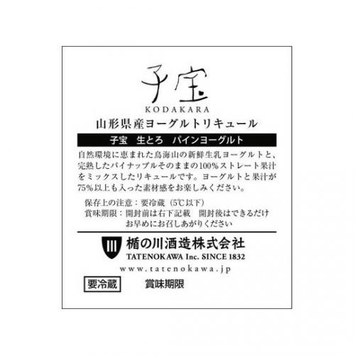 「子宝 生とろパインヨーグルト」は、鳥海高原のヨーグルトと100%ストレートのパイン果汁を用いて製造したリキュールです。 鳥海高原ヨーグルトのとろとろとした生乳感、パイン果汁のフルーティーな甘味がほどよく調和しています。 常夏の南国を想像させる、果汁たっぷりのヨーグルトリキュールをご賞味ください。