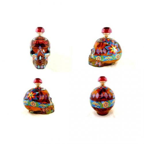 透明なドクロのボトルに、鮮やかな装飾。見た目のユニークなブルーアガベ100%テキーラ。