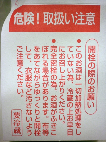 酵母の生きている活性酒ですので必ず冷蔵庫で保管し、開封時は噴き出しにご注意ください!